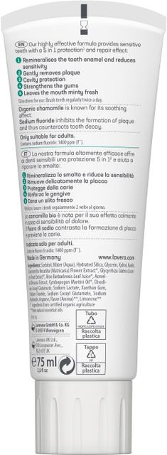 Pasta do wrażliwych zębów z rumiankiem i fluorem SENSITIVE Lavera 75 ml