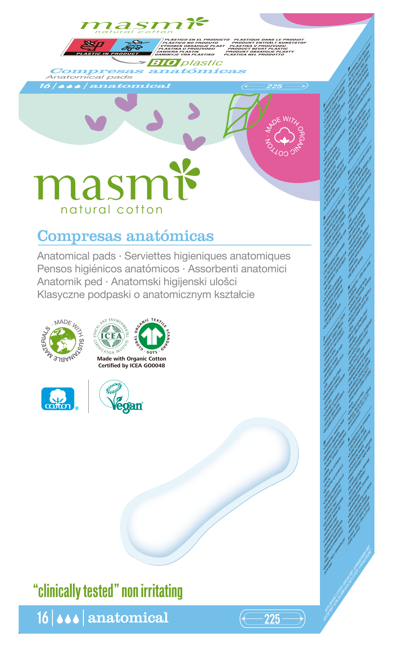 Podpaski ekologiczne klasyczne Masmi BIO 100% bawełny organicznej 16 szt.